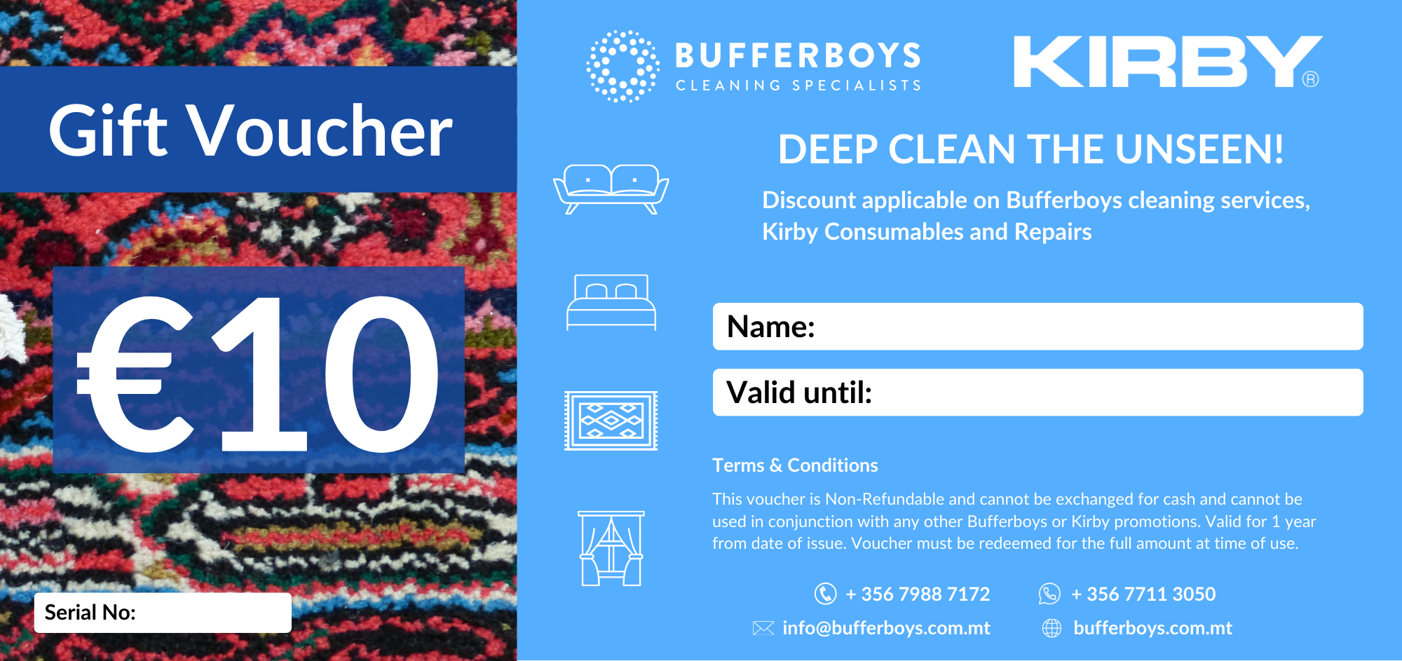 This versatile €10.00 voucher can be used towards any of our professional cleaning services or redeemed on our online shop. The perfect choice for anyone who values freshness, comfort, and convenience.